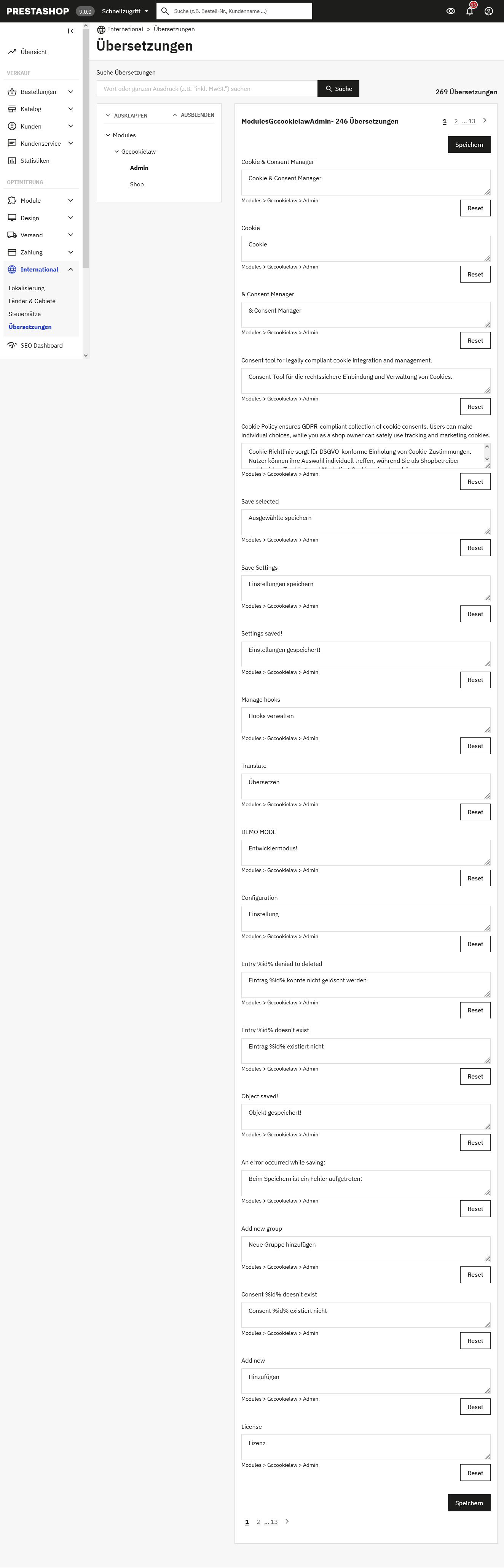 Das Modul kann in alle verfügbaren Sprachen übersetzt werden. Standardmäßig sind Deutsch und Englisch enthalten.