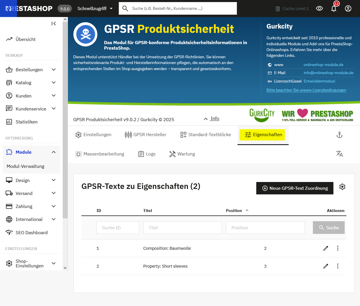 Gurkcity Docs - Onlineshop Module für PrestaShop