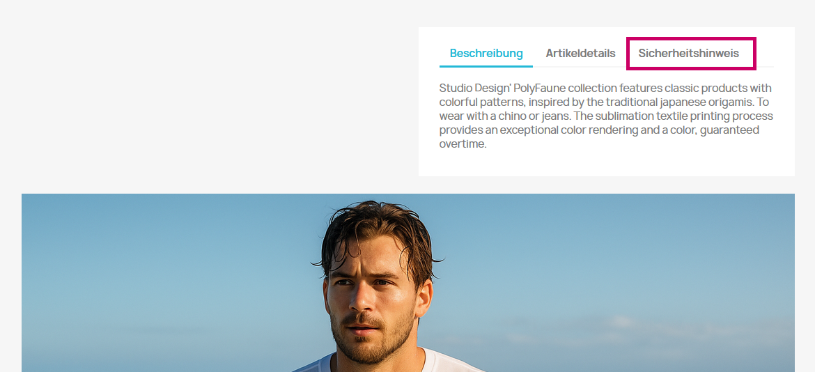 • Position: Reihenfolge oder Anzeigeplatzierung der Texte auf der Produktseite.