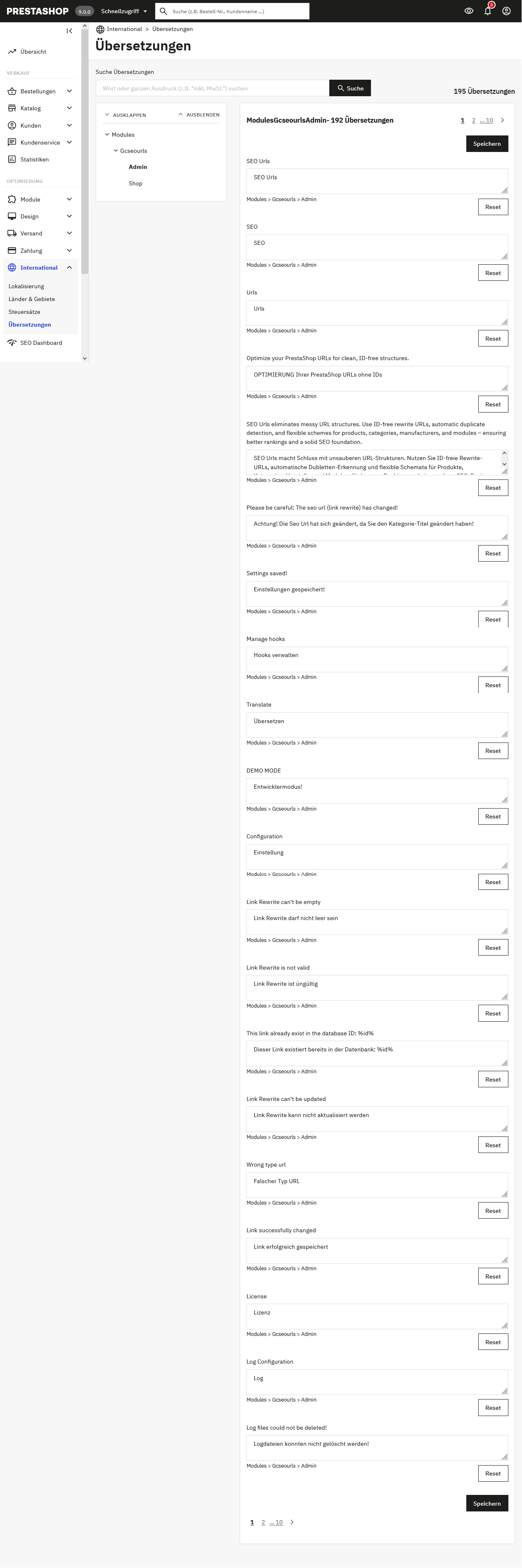 Das Modul kann in alle verfügbaren Sprachen übersetzt werden. Standardmäßig sind Deutsch und Englisch enthalten.