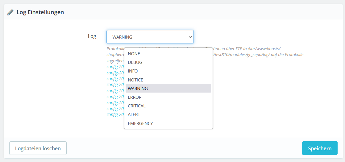Der Button "Speichern" speichert das gewählte Loglevel.